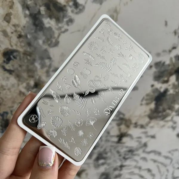 DIVNA Blaszka do Stampingu 002 to wysokiej jakości metalowa płytka stemplowa stworzona z myślą o łatwym i szybkim zdobieniu paznokci. Zawiera wyraźnie wyżłobione wzory umożliwiające precyzyjne odbicie na naturalnych i sztucznych paznokciach.