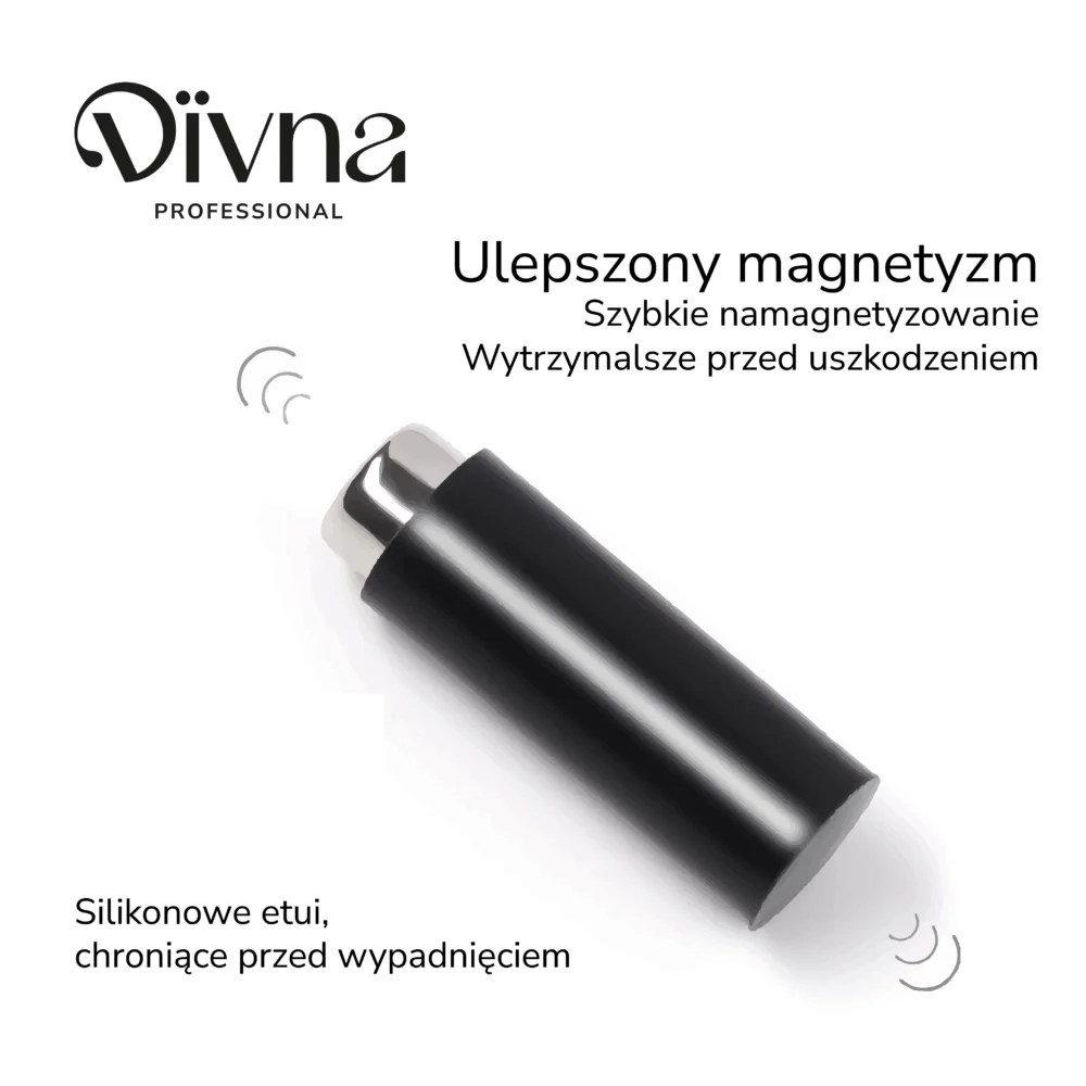 DIVNA Magnes Silikonowy do kociego oka – magnes niezbędny przy wykonaniu manicure z wykorzystaniem lakierów lub baz Cat Eye. Uwaga: Magnet Stick przyciąga drobinki i dzięki niemu tworzymy efekt kociego oka