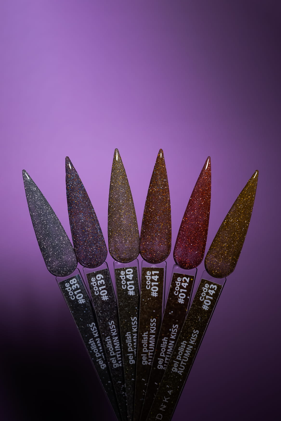 Kolekcja intensywnie połyskujących, witrażowych odcieni lakierów hybrydowych, idealnych na jesienne dni. Kolekcja „Autumn Kiss” to połączenie elegancji i romantyzmu z delikatnym jesiennym blaskiem. Te odcienie, inspirowane ciepłymi, przytulnymi kolorami zmieniającej się natury, otulają paznokcie subtelnym kolorem i nadają im niepowtarzalny blask. Lakiery hybrydowe z tej kolekcji mają średnią konsystencję, wzbogaconą brokatem i kryształkami z efektem „flash”, które odbijają światło jak księżyc na spokojnym, nocnym niebie.