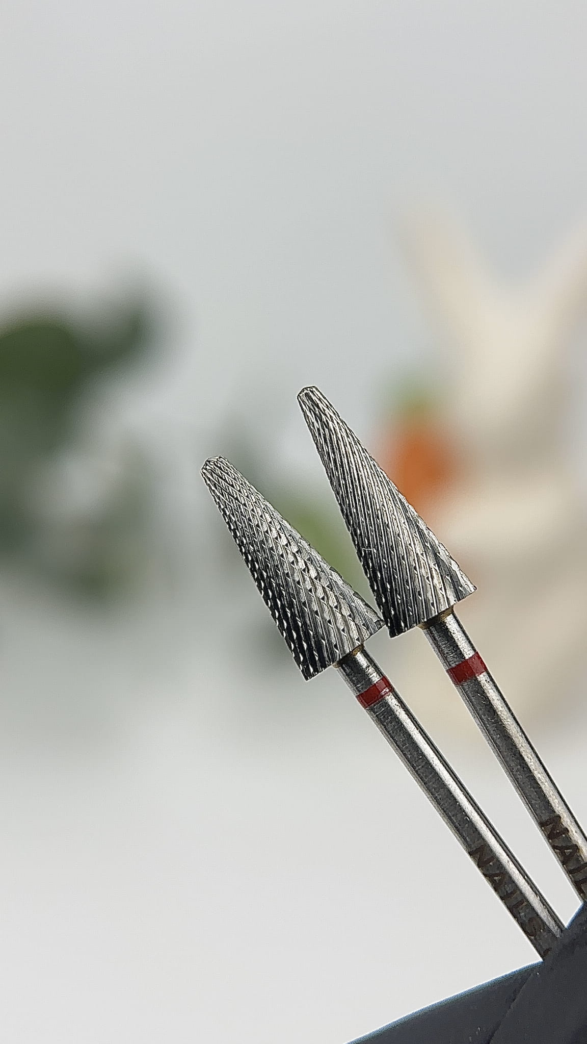 Frez do paznokci z węgliku spiekanego służy do usuwania lakieru hybrydowego, akrylu i obróbki sztucznych paznokci. Pozwalają skutecznie usunąć nadmiar materiału i szybko skorygować kształt paznokcia. W pedicure służą do usuwania martwego naskórka. Kształt "stożka" ma cienki, spiczasty koniec, który pozwala na cięcie wolnej krawędzi bez wymiany wiertła.