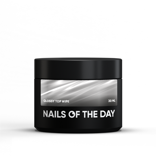 NAILSOFTHEDAY Glossy top wipe to uniwersalny top błyszczący z lepką warstwą bez filtru UV. Dzięki nowoczesnej formule doskonale wyrównuje i szczelnie pokrywa płytkę paznokcia. Zapobiega odpryskom i zarysowaniom. Glossy top wipe zachowuje każdy odcień lakieru hybrydowego i stabilny połysk nawet do czterech tygodni. Nie żółknie. Ma średnią konsystencję.