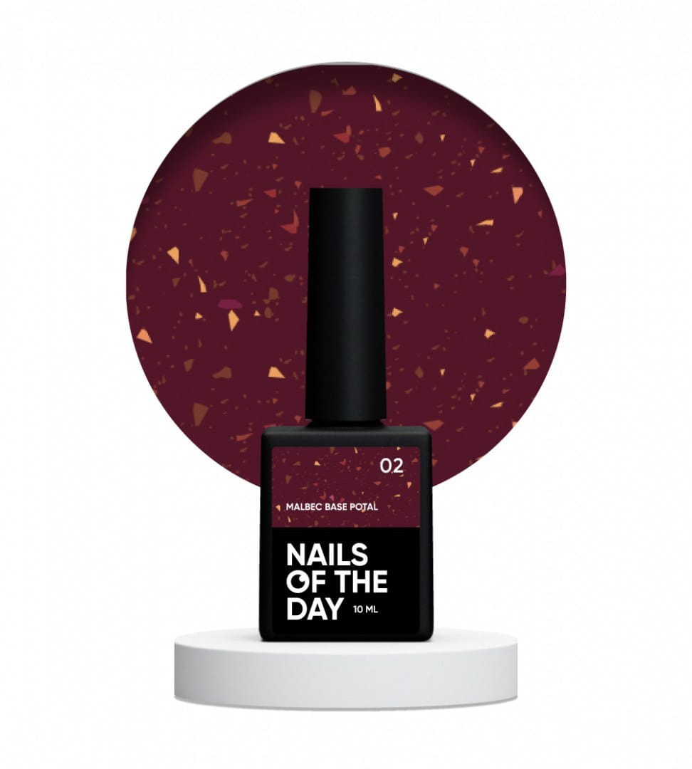 NAILSOFTHEDAY Malbec base Potal 02 - witrażowa krwisto-czerwona baza hybrydowa ze złotymi płatkami, 10 ml