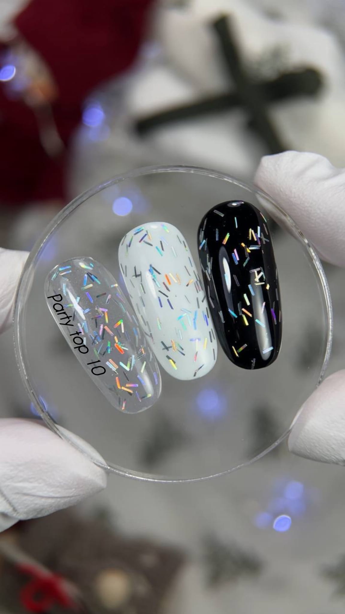 NAILSOFTHEDAY Party top 10 – przezroczysty top z holograficznymi elementami, bez lepkiej warstwy, 10 ml.