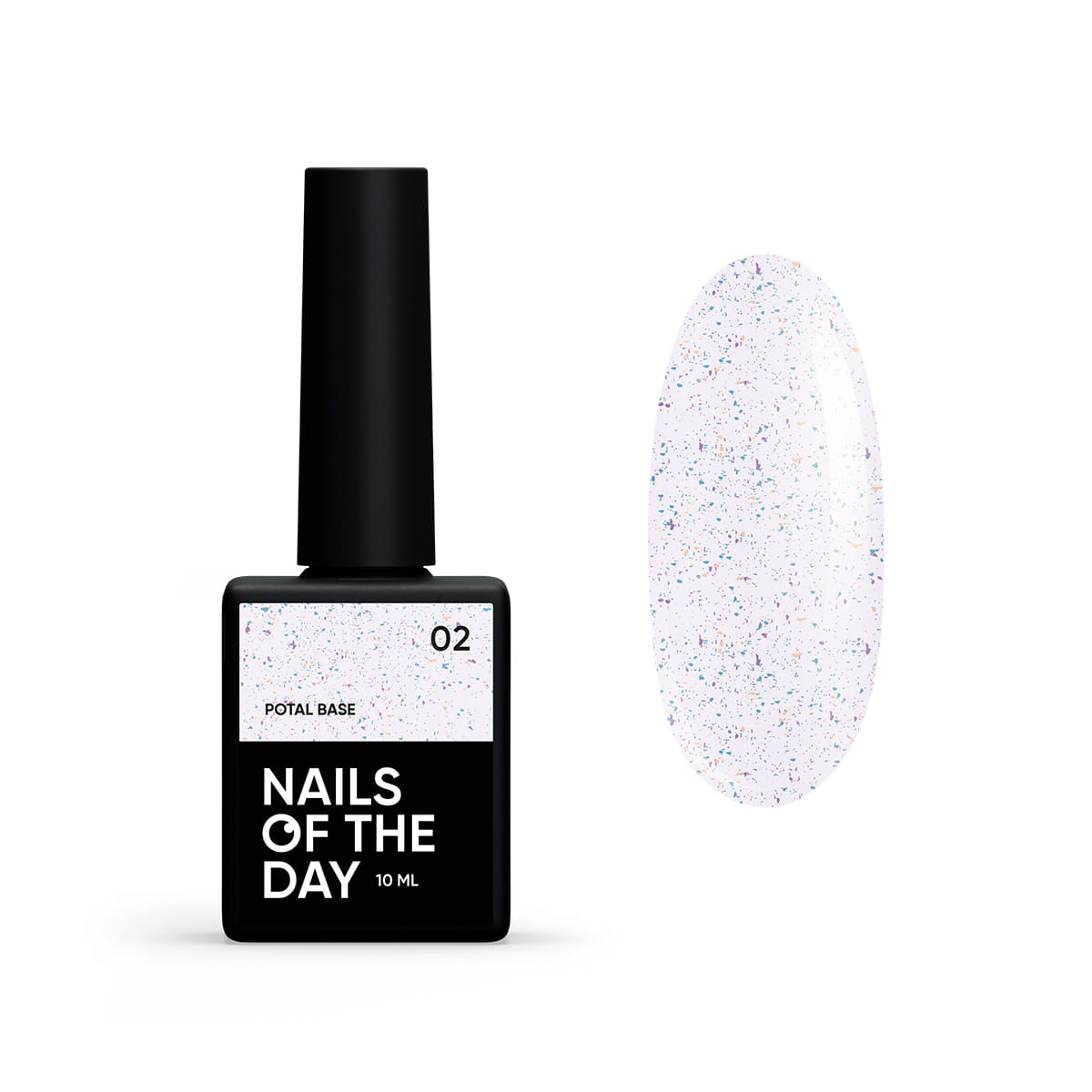 NAILSOFTHEDAY Potal base 02 – mleczno-błękitna baza ze złoto-fioletowymi oraz turkusowymi płatkami, 10 ml
