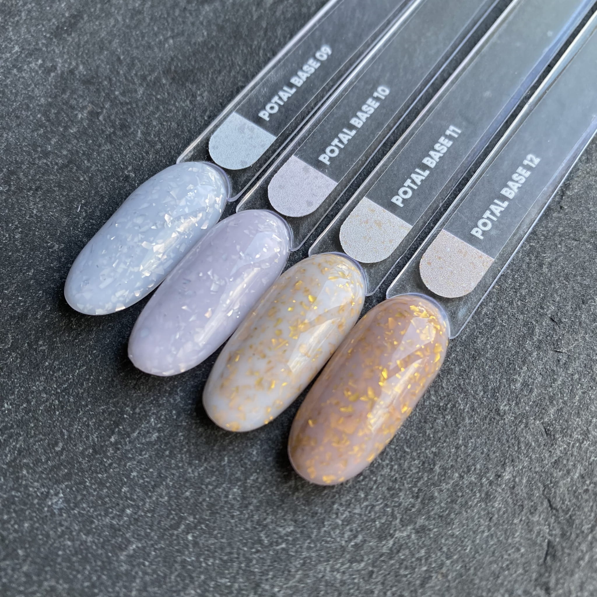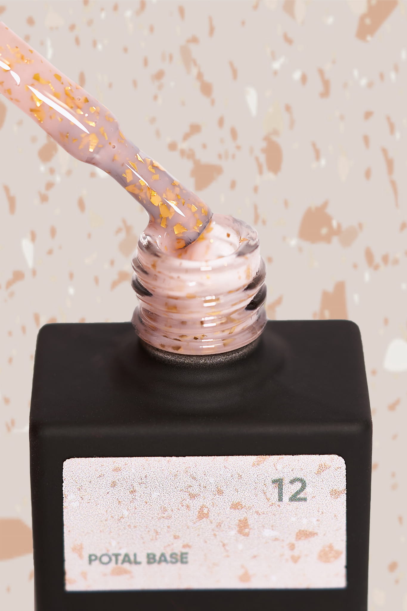 NAILSOFTHEDAY Potal base 12 – beżowa baza ze zlotymi płatkami, 10 ml