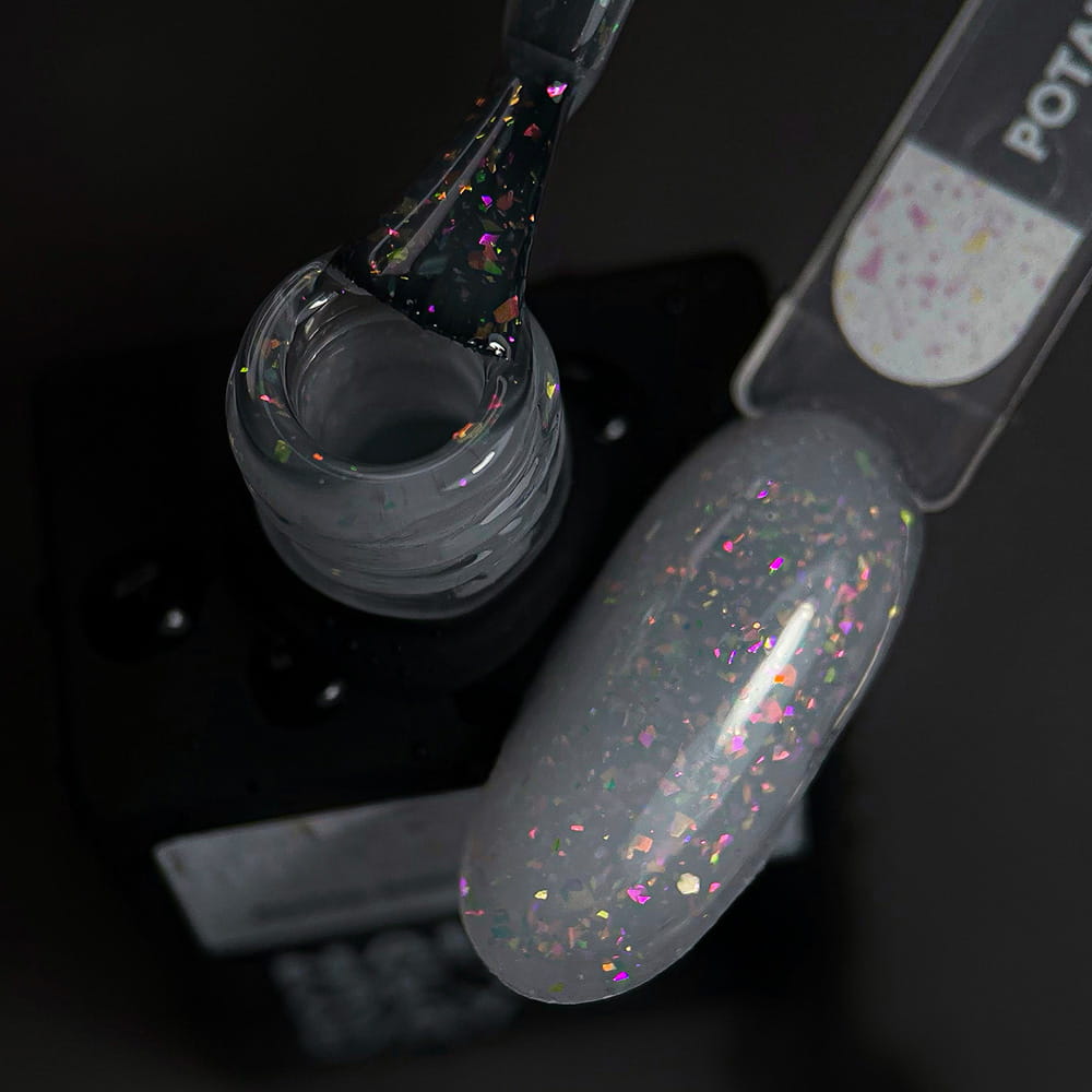 NAILSOFTHEDAY Potal base 15 – delikatno-mleczna baza z holograficznymi płatkami, 10 ml