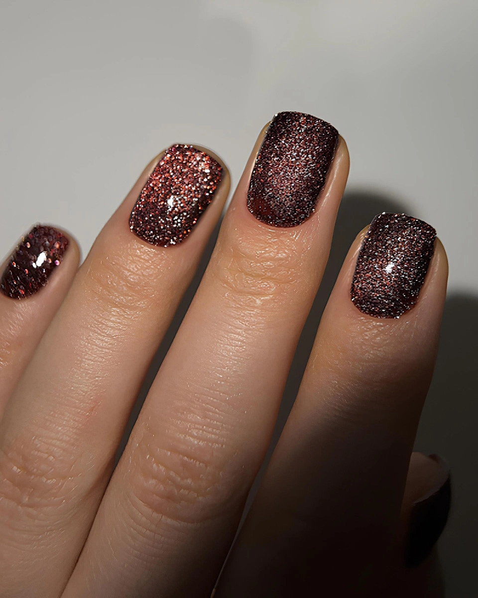 - Nałóż lakier żelowy w 1 lub 2 warstwach i wykonaj wzór przy użyciu magnesu.