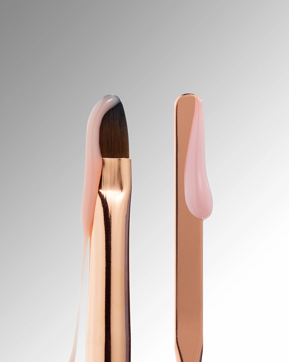 Pędzelek do żelu – długość 9 mm, o zaokrąglonym kształcie, średniej twardości. Dobrze utrzymuje kształt i nadaje się do wygładzania oraz modelowania materiałów o średniej konsystencji.