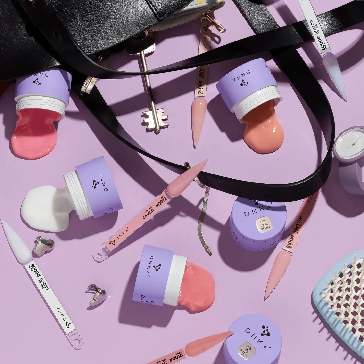 DNKa Jelly Gel to kolekcja innowacyjnych, trójfazowych żeli budujących o unikalnej konsystencji galaretki i bardzo wysokiej lepkości. Dzięki swojej stabilnej strukturze, żel pozostaje nieruchomy podczas modelowania, co pozwala stylistce na jednoczesną pracę z kilkoma paznokciami, znacząco przyspieszając proces stylizacji.
