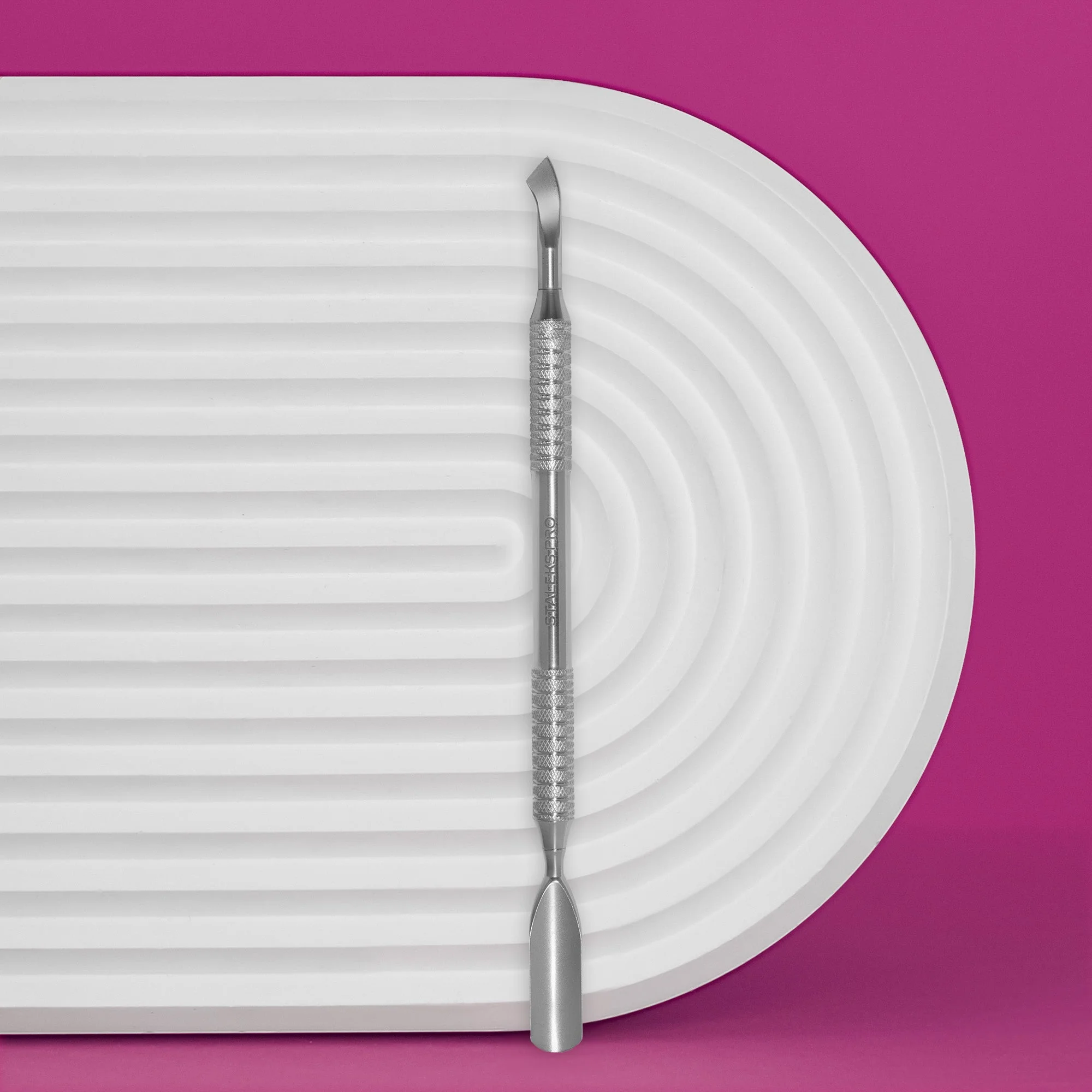- Łopatka do manicure (okrągły szeroki popychacz + zakrzywiona łopatka).