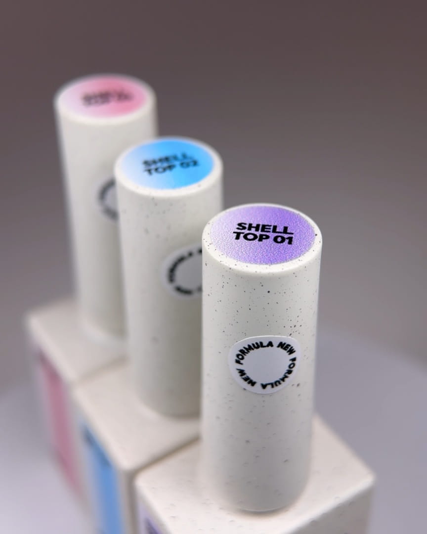 NAILSOFTHENIGHT Shell Top to innowacyjny top bez lepkiej warstwy, który łączy efekt perłowy i efekt pyłku w jednej butelce. Zamiast trzystopniowej aplikacji (kolor → pyłek → top), Shell Top pozwala uzyskać modne, połyskujące wykończenie jednym ruchem. Wcieranie pyłku i zabezpieczenie stylizacji odbywa się w jednym etapie, co skraca czas pracy i minimalizuje ryzyko odprysków.