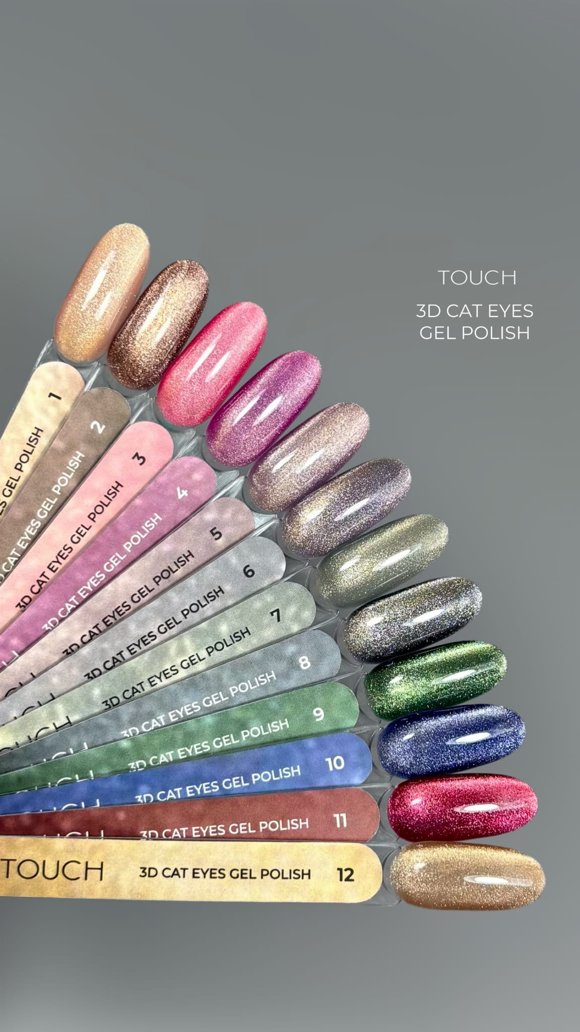 Kolekcja TOUCH 3D Cat Eye to innowacyjne lakiery hybrydowe, które ożywają pod wpływem magnesu, tworząc spektakularny, głęboki efekt 3D Cat Eye. Dzięki kamuflującej bazie oraz wysokiej koncentracji metalizowanych drobinek stylizacja zyskuje intensywny, wielowymiarowy blask, który szczególnie efektownie prezentuje się w sztucznym świetle, nadając manicure luksusowy charakter.